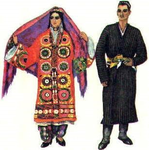 Женщины одевались в просторные платья из гладких тканей. В горных южных районах, особенно в Дарвазе и Кулябе, платья богато вышивались и являли собою образцы народного декоративного искусства. Костюм дополняли широкие шаровары.
